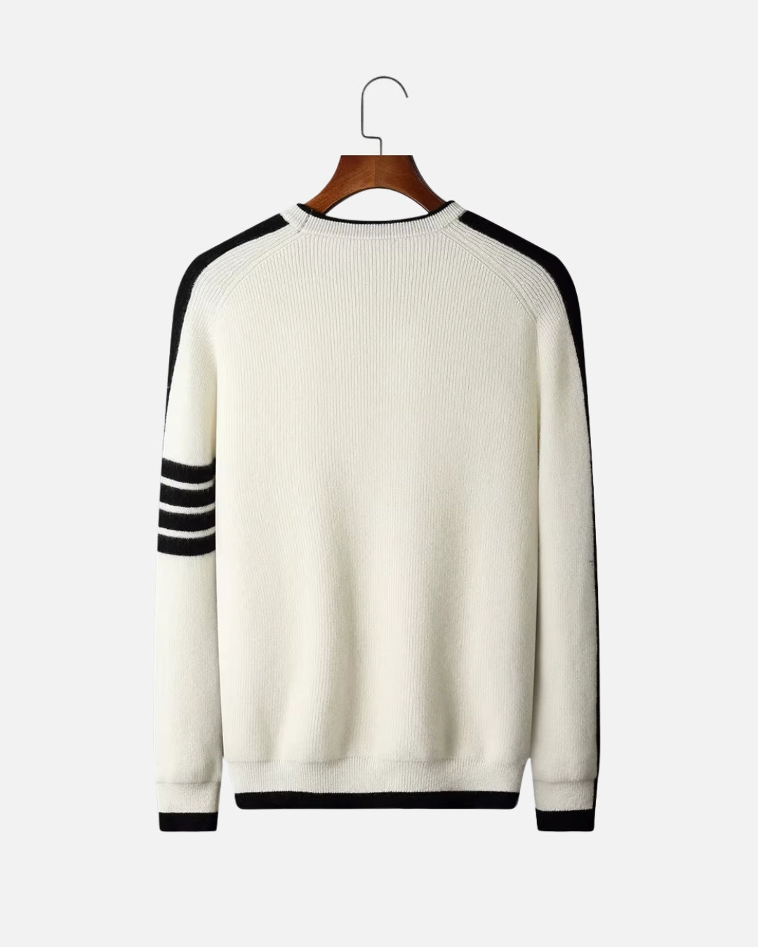 Een rustige, moderne crewneck met sportieve streepaccenten, subtiel zichtbaar zonder de kalme uitstraling te doorbreken. De ribstructuur voelt stevig en comfortabel, met een natuurlijke elasticiteit die soepel meebeweegt. De wol blijft aangenaam op temperatuur, zowel binnen als op koudere dagen. Minimalistisch, tijdloos en moeiteloos te combineren met iedere herengarderobe.